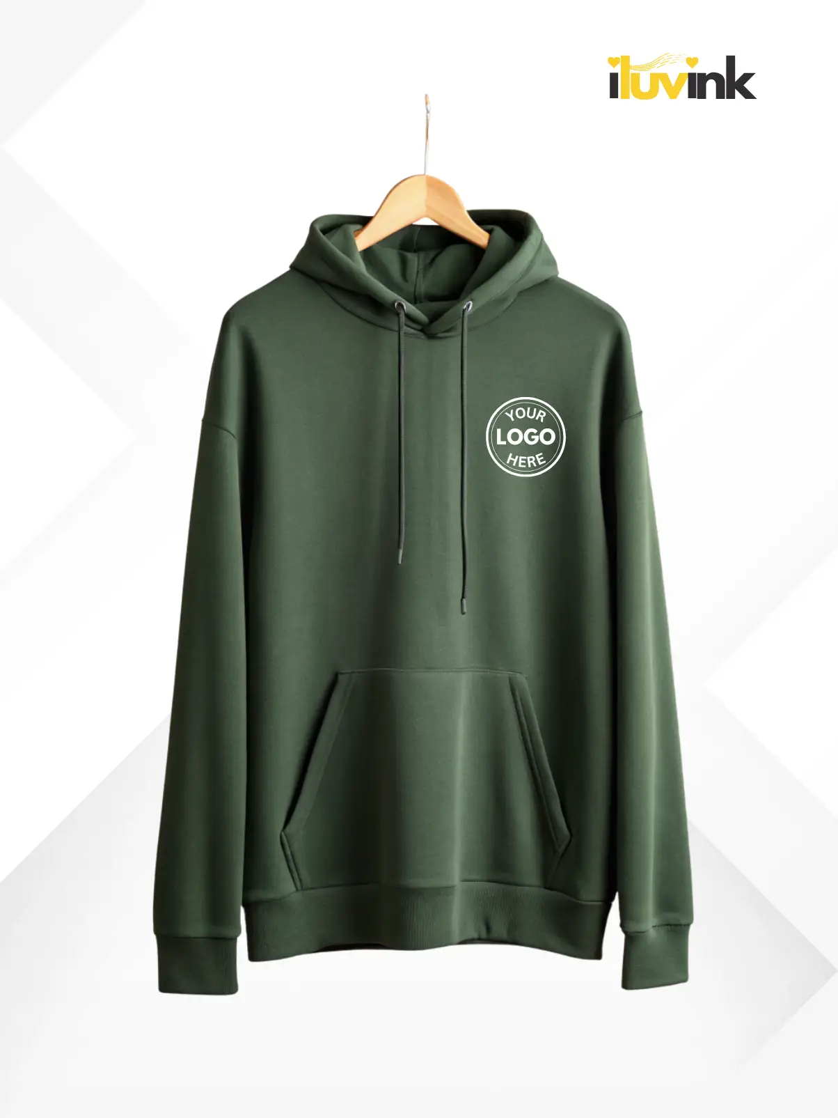 Made with 300 GSM 100% super-combed cotton, this unisex customized green hoodie offers superior comfort and quality. Designed with derby ribbed hem and cuffs, pre-shrunk and bio-washed fabric, and reinforced double stitching for a classic, durable fit.